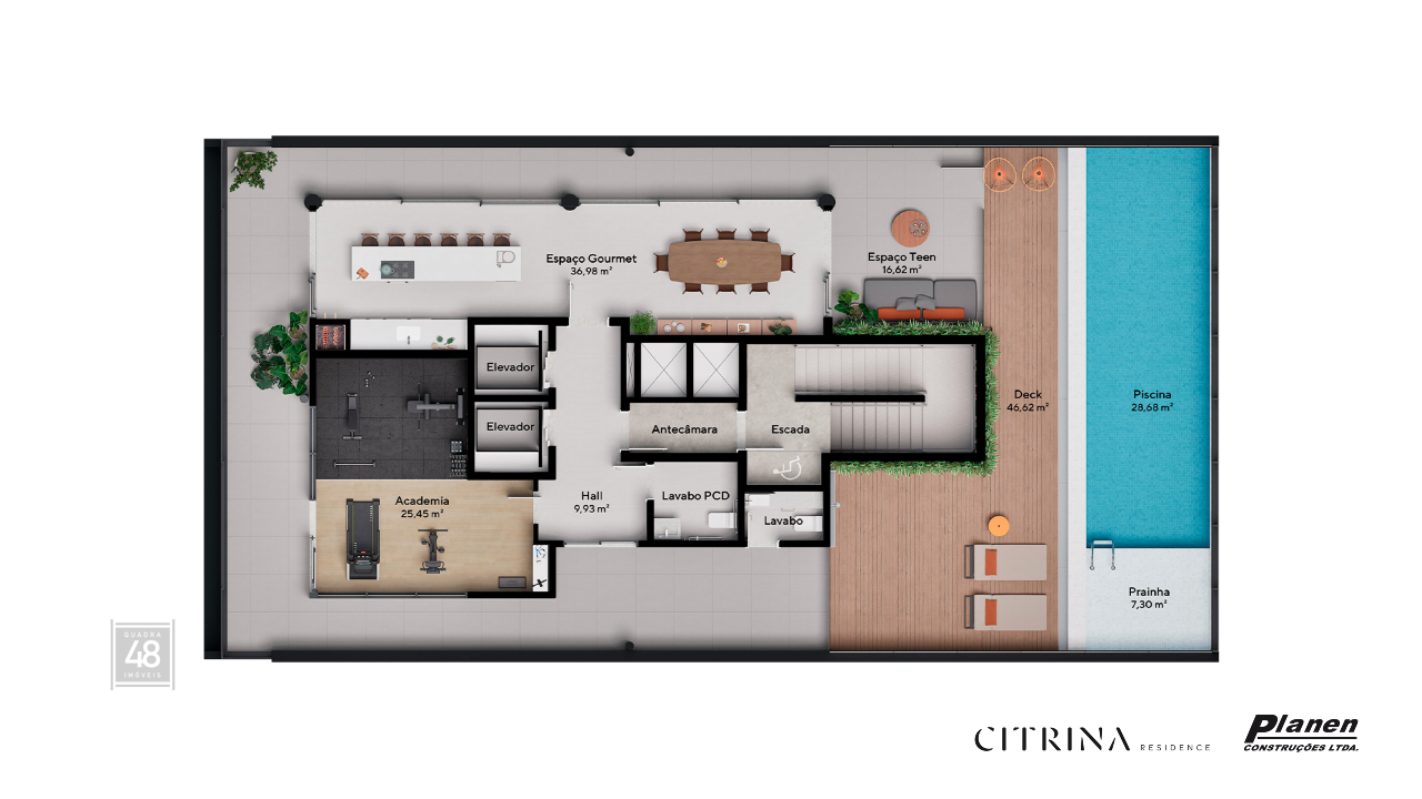 Citrina Residence. Localizada no ponto mais alto do empreendimento, a piscina oferece uma vista