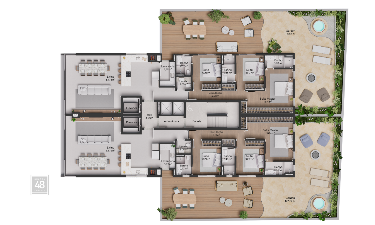 apartamentos de 143,51 m², nossas plantas oferecema
